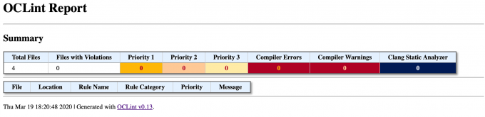 最后一步是将分析结果生成报告,这中间就会用到各种校验规则了,OCLint默认有些规则,包含了可能出现的大部分场景,当然也可以根据OCLint提供的方法自定义规则,执行如下命令生成报告